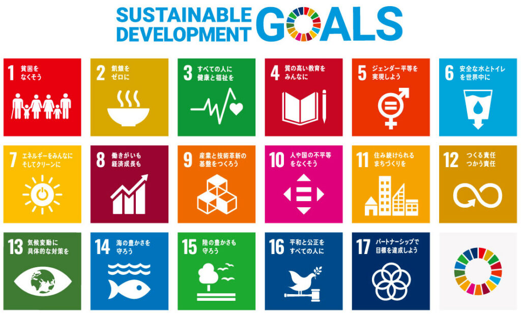 SDGs(エスディージーズ・Sustainable Development Goal)とは「持続可能な開発目標」の略称で、2030年までに持続可能な社会を実現するための目標です。